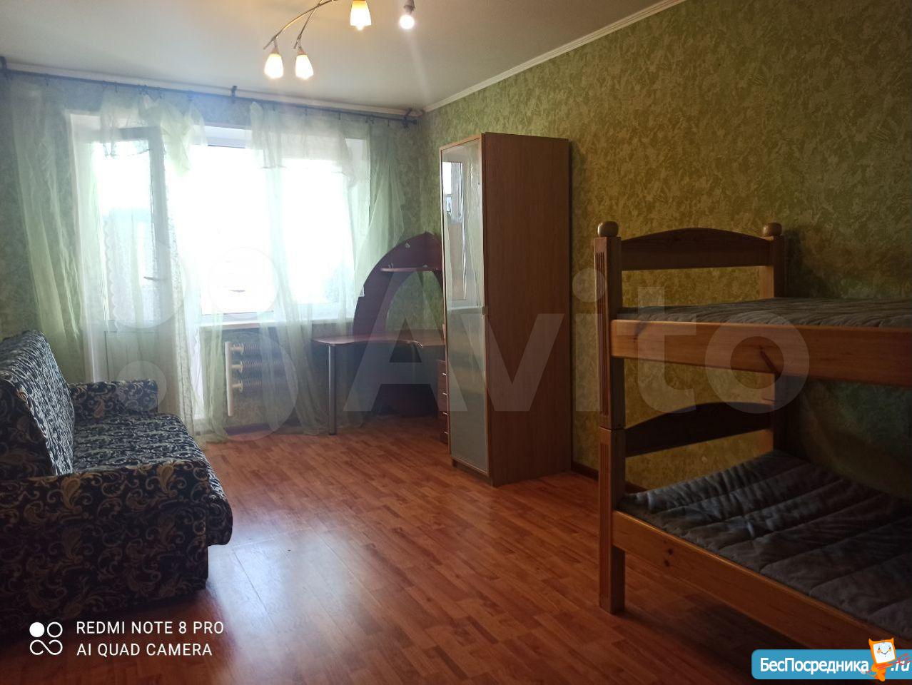 В квартире большая кровать и шкаф, на кухне гарнитур, холодильник, стол. В прихожей дополнительные шкафы. В шаговой доступности магазины, почта, Сбербанк, школа и детский сад, отличная транспортная развязка. Около дома парковка.