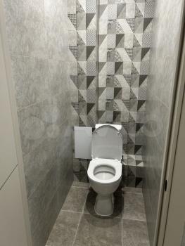 Санузел раздельный, оформлен стильной плиткой.