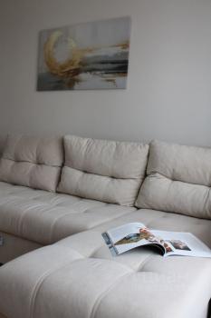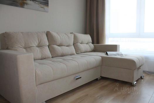 Новая студия в новостройке, 21 квадрат, помимо дивана (с пружинным ортопедическим блоком), спать удобно, раскладывается без перепада высоты, и хорошей длинный, высокий мужчина уберется), также куплено раскладное кресло-шезлонг (на фото нет), можно для ребенка, или вынести на панорамный балкон, для чтения или отдыха. Полностью мебелирована, есть плита микроволновка, стиральная машина, холодильник, телевизор, посуда, шкафы