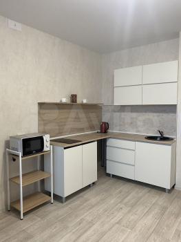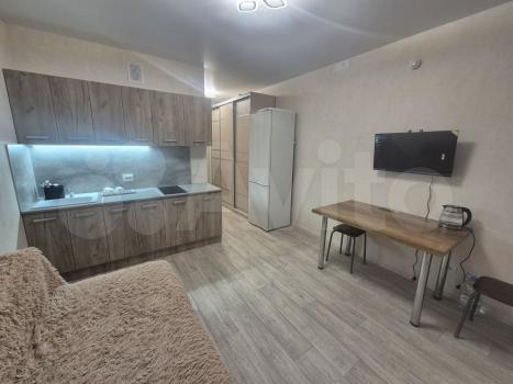 Сдается студия 21кв.м в новом доме на длительный срок. В квартире есть всё необходимое для проживания. Абсолютно вся мебель и техника новые (холодильник, индукционная варочная поверхность, стиральная машина, микроволновка, чайник, утюг, телевизор). Стол и стулья в доставке(на фото). Поступят на днях.