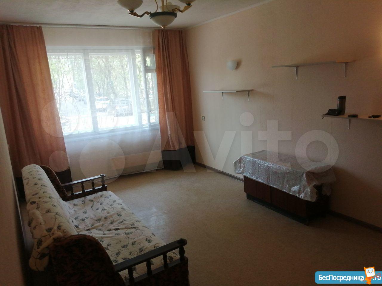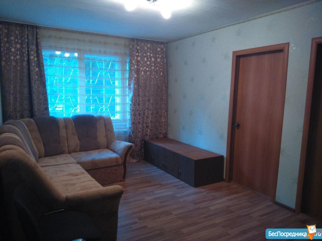 Сдаю 1-комнатную квартиру на пл. Комсомольской, на длительный срок. Имеется кухонная мебель. В комнате небольшая стенка и раскладной диван. Железная дверь, застекленный балкон, пластиковые окна. Аренда + оплата коммунальных услуг.