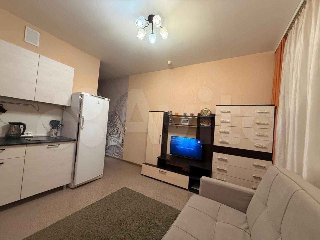 В студии новый диван, новая мебель, холодильник, телевизор. Есть место под стиральную машину.