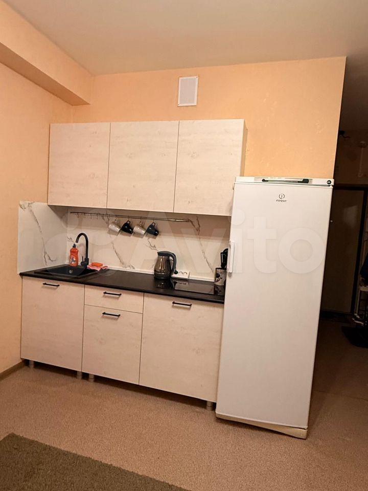 В студии новый диван, кухня, холодильник, телевизор, мебель. А также рабочая плита. Стир.машинки нет, но есть место для её установки.
