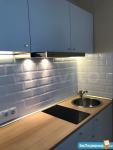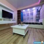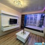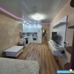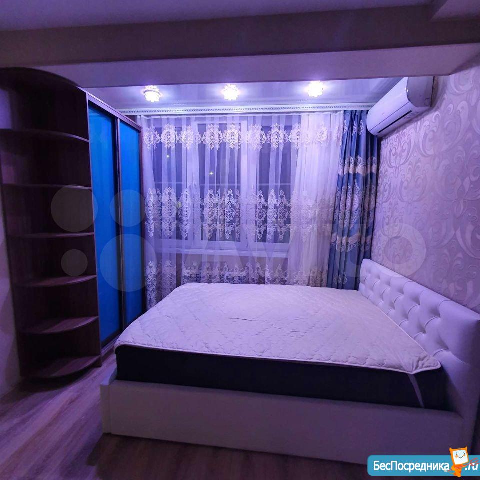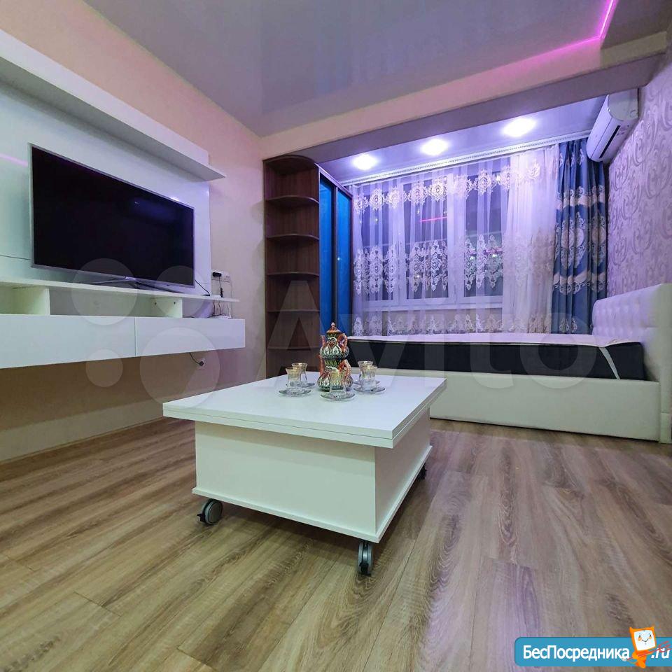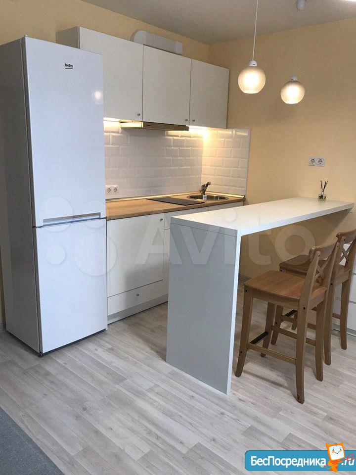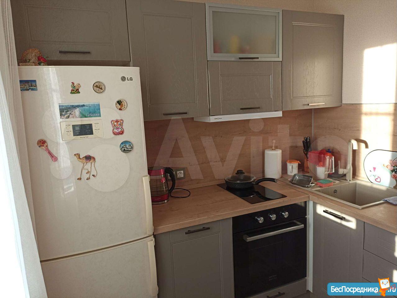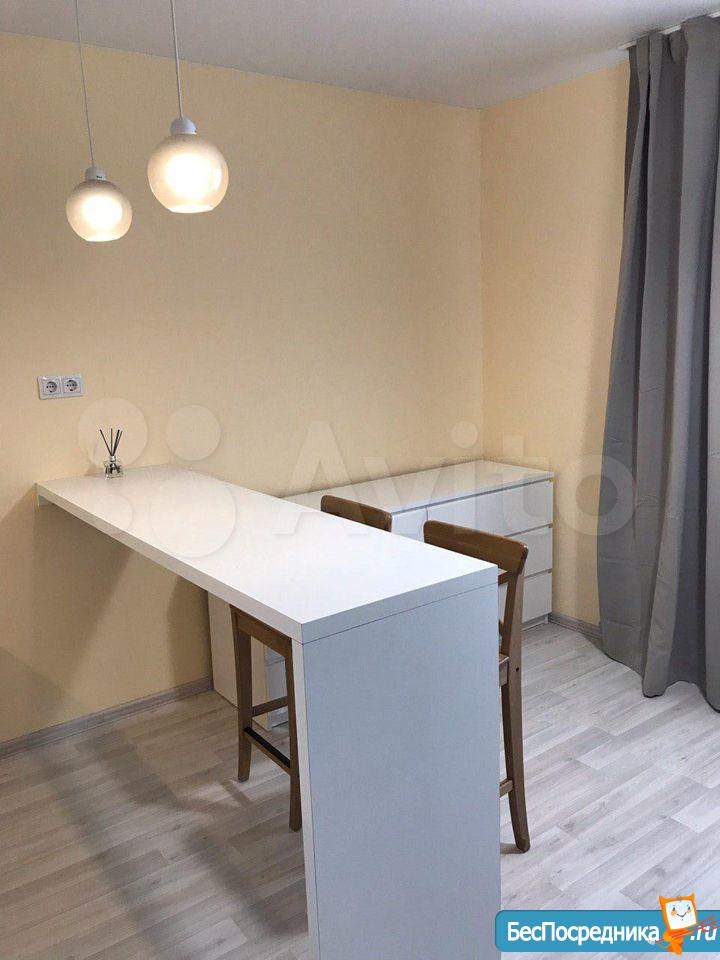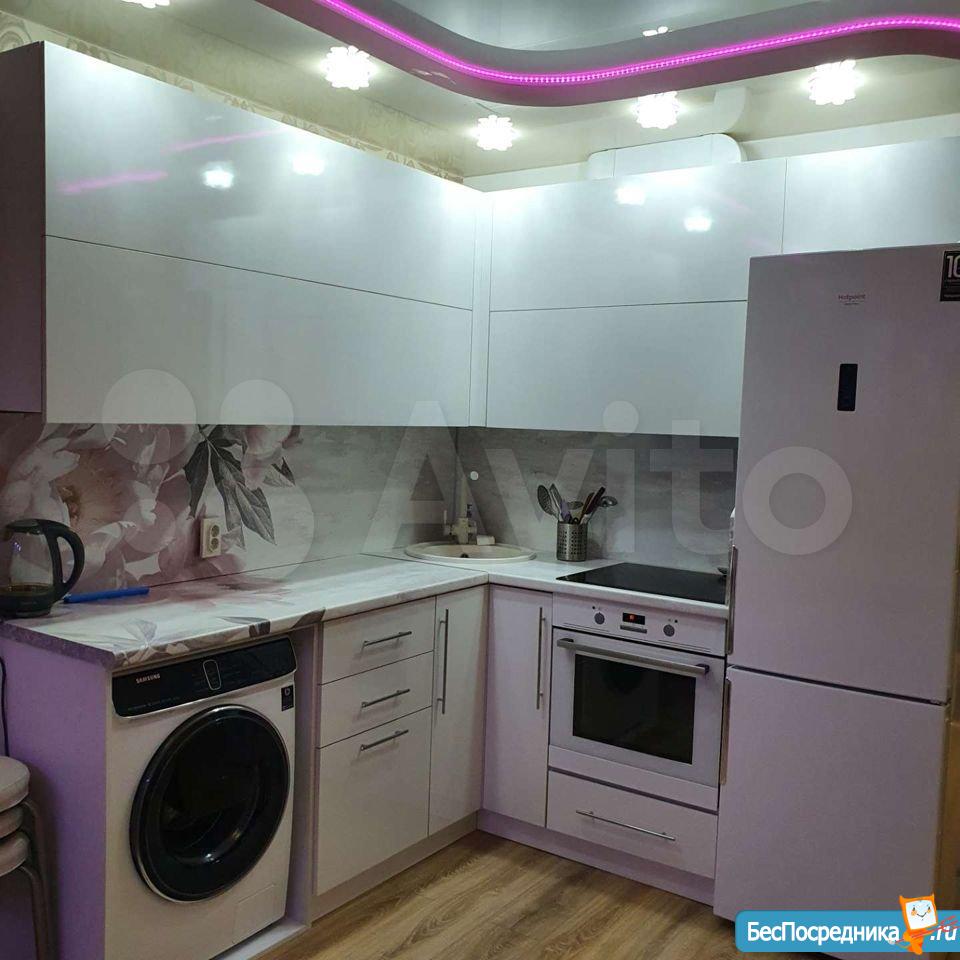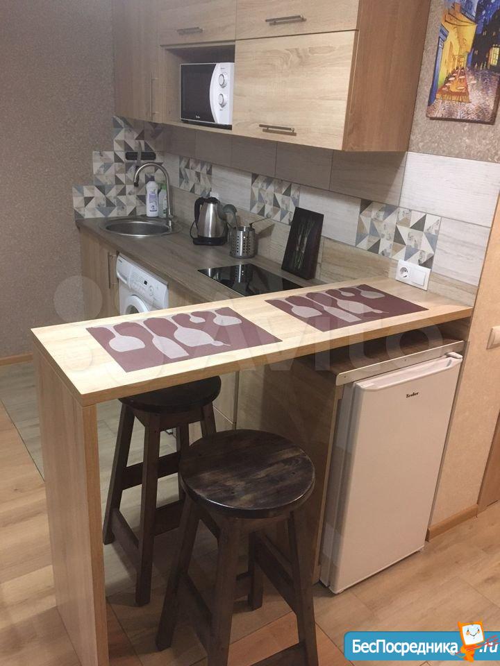 В квартире имеется вся мебель необходимая для комфортного проживания. Полноценный кухонный гарнитур с подсветкой рабочей зоны, встроенная стеклокерамическая электрическая плита, вытяжка и холодильник.