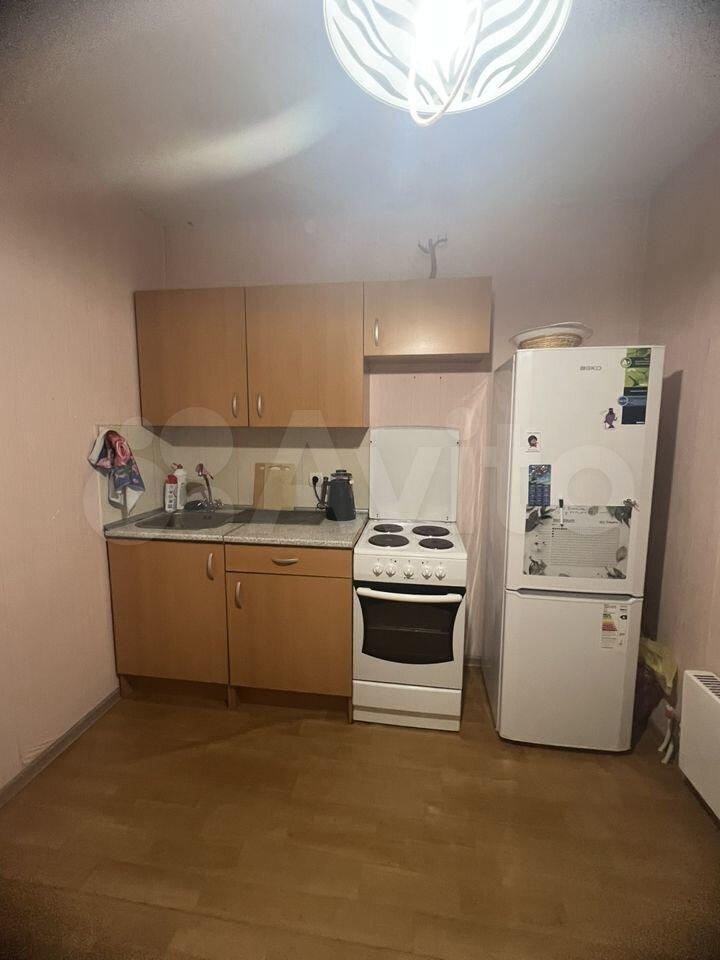 В квартире холодильник, стиралка, кухонный гарнитур, кровать, диван, шкаф, стол, стулья.