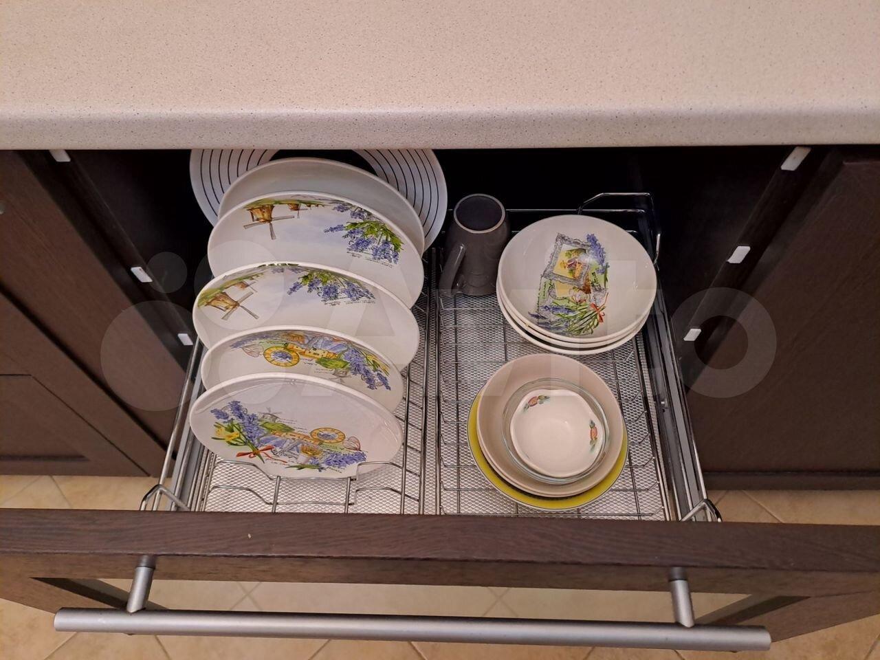 На кухне: мощная вытяжка, чтобы запахи не беспокоили, посудомойка, которая справляется с горой посуды после ужина, и фильтр для воды — пейте чистую воду не задумываясь.
