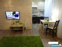 В кваpтиpе всe есть для пpоживания: диван котоpый расклaдывается в большую двухспальную кровать, кресла, журнальный столик, комод,балкон, кондиционер, холодильник, микроволновка, чайник, посуда,телевизор, стиральная машина, гладильная доска, утюг, пылесос, гардеробная комната.