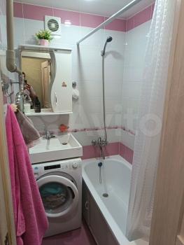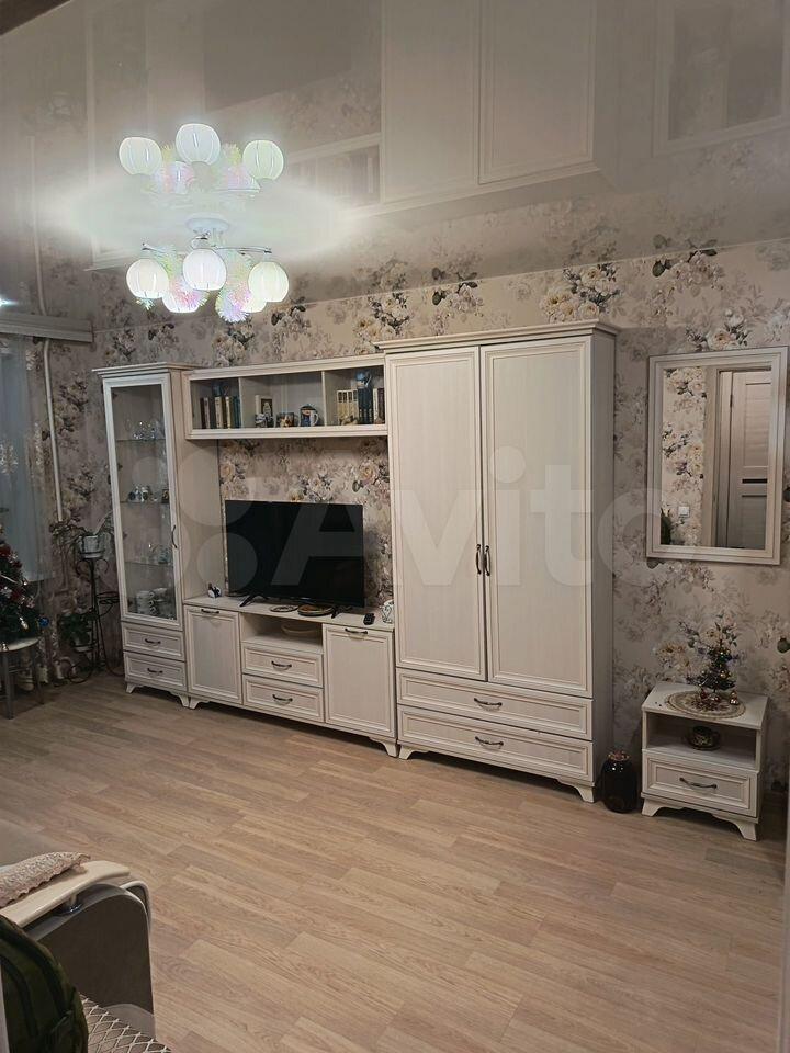 В комнате установлен вместительный шкаф и телевизор. Из мебели также есть удобный диван. Санузел раздельный, оборудован ванной и стиральной машиной.