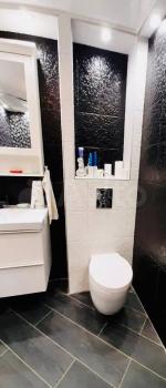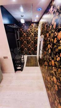 В квартире есть большой шкаф для вещей, раскладывающийся диван, стол, кресло, телевизор со смарт-тв, холодильник, микроволновая печь, стиральная машина, посудомоечная машина, wi-fi-роутер и интернет 100 мегабитс. Входная дверь с усиленным утеплением и звукоизоляцией, пластиковые окна. Пол утеплен. На полу плитка и ламинат.