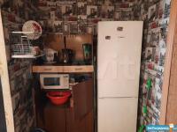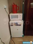 В комнате есть диван атланта, стул, кресло, 2 стола, большой шкафы для одежды, шкаф для вещей, холодильник, мультиварка, микроволновка, индукционная плитка, стиральная машина.
