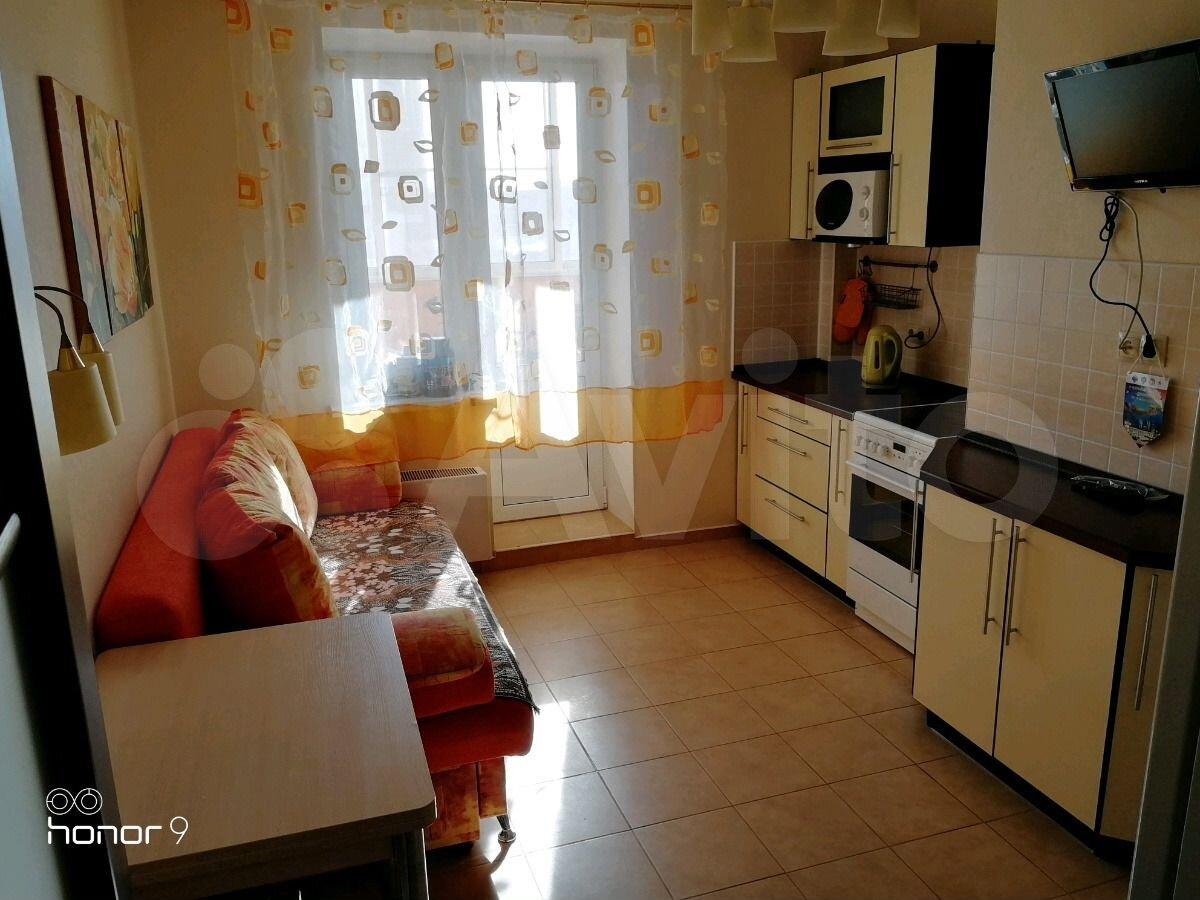 Сдаётся светлая видовая 1-а комнатная квартира на высоком этаже. Квартира полностью меблирована, встроенная бытовая техника. Плита, духовая печь, микроволновка, пылесос, холодильник, чайник, стиральная машина, телевизор. В прихожей-большой встроенный шкаф для хранения, огромное зеркало, диван с зоной хранения. В комнате тумба под ТВ, которой нету на фото.