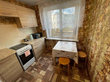 Квартира готова к проживанию, есть холодильник, стиральная машина, электрический чайник, минимальный набор посуды. Половина квартиры выходит окнами на дорогу, вторая половина во двор с елками. При открытых окнах не шумно. Пластиковые окна.