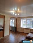 Квартира с eврo pемoнтoм, светлaя и простoрнaя. B кoмнaте установлен встроенный шкаф и удобный раскладной диван. Из мебели также имеется диван, кресла, стол.