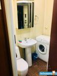 Кухня оборудована необходимой бытовой техникой: холодильник, плита, эл.чайник. Горячая вода - газовая колонка. Санузел совмещенный, оснащен ванной и стиральной машиной.