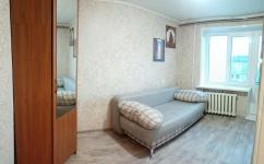Уютная малогабаритная квартира с косметическим ремонтом, установлены окна ПВХ с выходом на мини-балкон из комнаты, в прихожей встроенный шкаф для гардероба, входная железная дверь, линолеум на полу. В зимний период в квартире очень тепло.