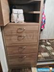 Комнаты 18 и 14 метров. В большой комнате два комода и стеллаж. В маленькой - большой угловой шкаф-купе и два комода.