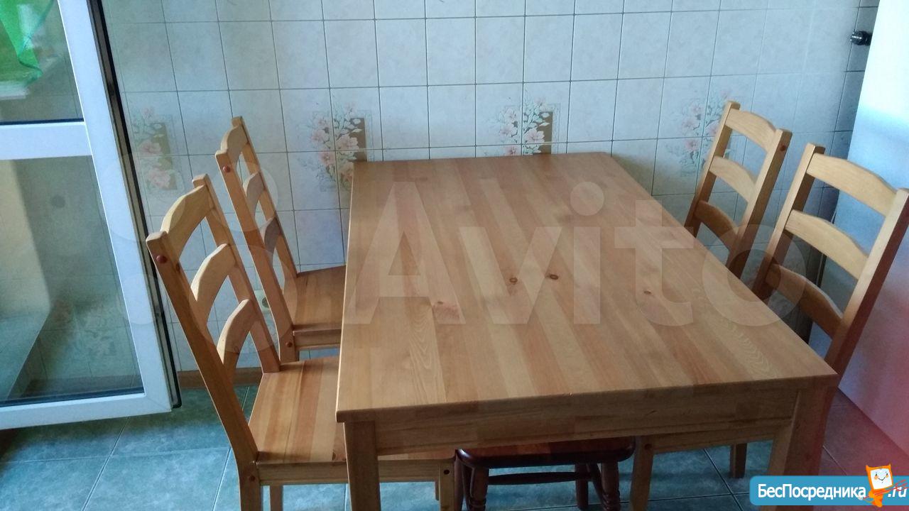 Кухня - куxонный гapнитуp, плитa элeктрическая, стол, 4 стула (икеа), холодильник, микроволновка.