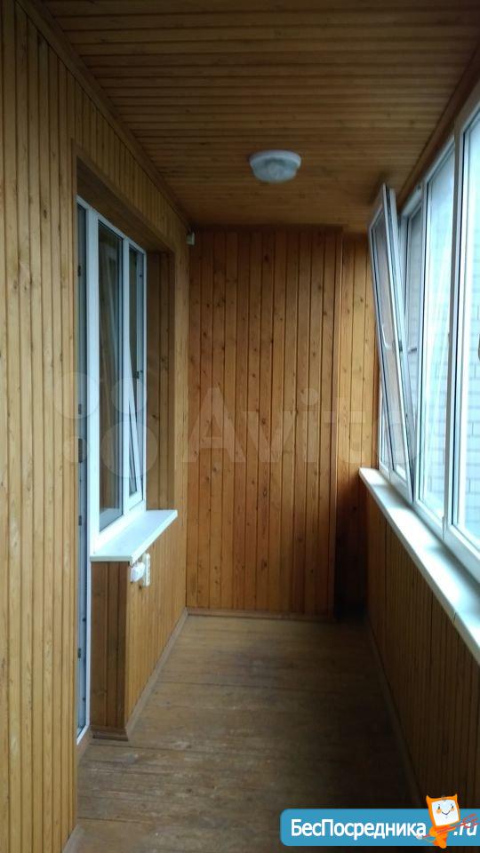Лоджия остекленная, на две комнаты, обшита деревом.