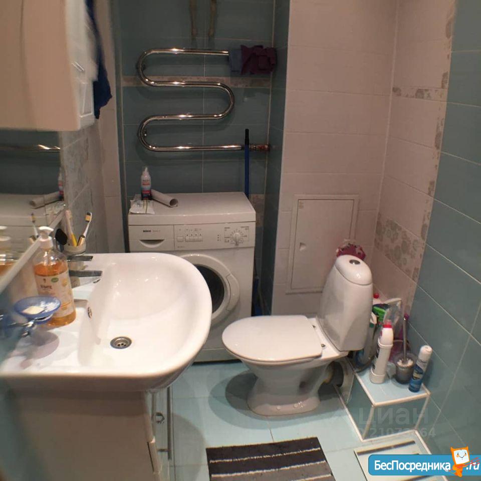 Санузел раздельный в кафеле. В туалете шкаф, новый бойлер на случай отключения горячего водоснабжения. В ванной стиральная машина.