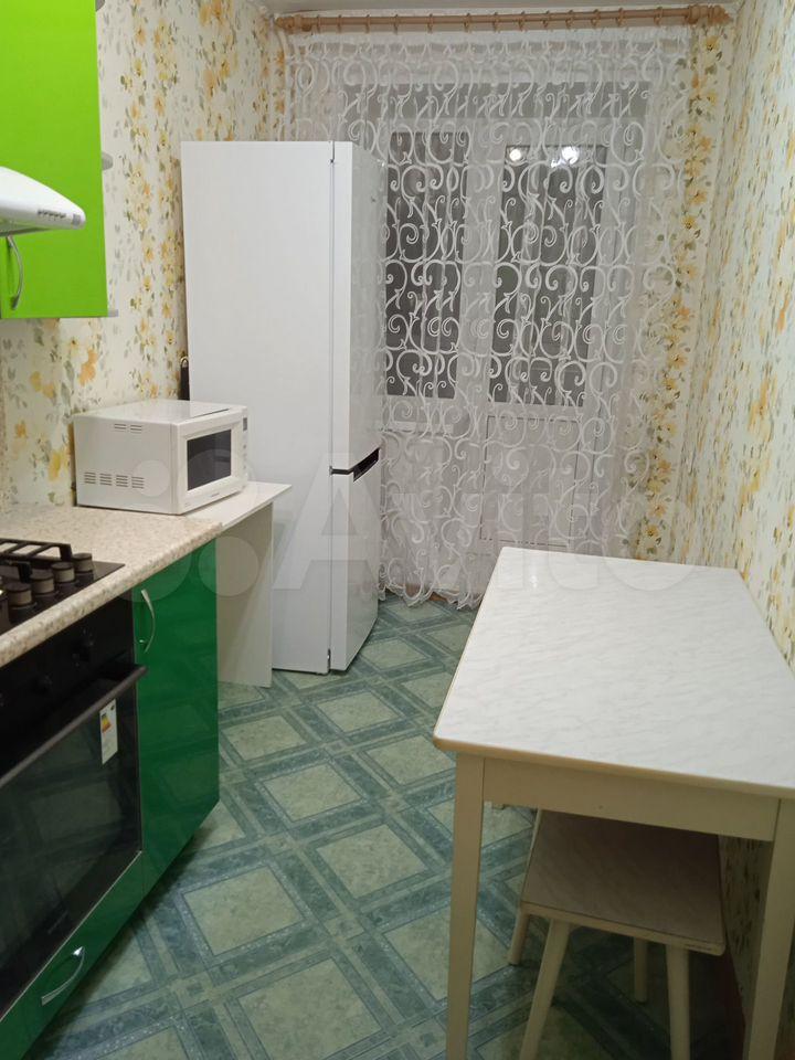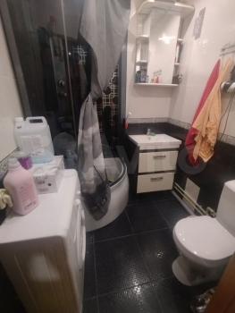 В квартире выполнен косметический ремонт. Просторная кухня оснащена необходимой бытовой техникой, включая холодильник и плиту. Из мебели есть диван и кровать. Санузел совмещённый, с современной сантехникой и стиральной машиной.