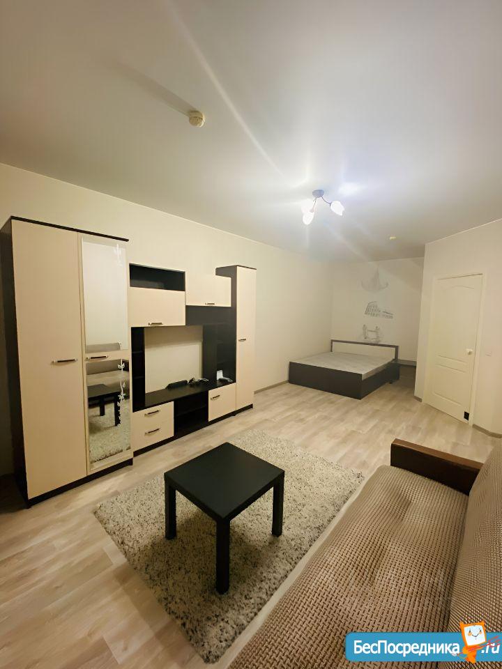 Сдается на длительный срок однокомнатная квартира в мкр. Водный Мир с шикарным видом на озеро.