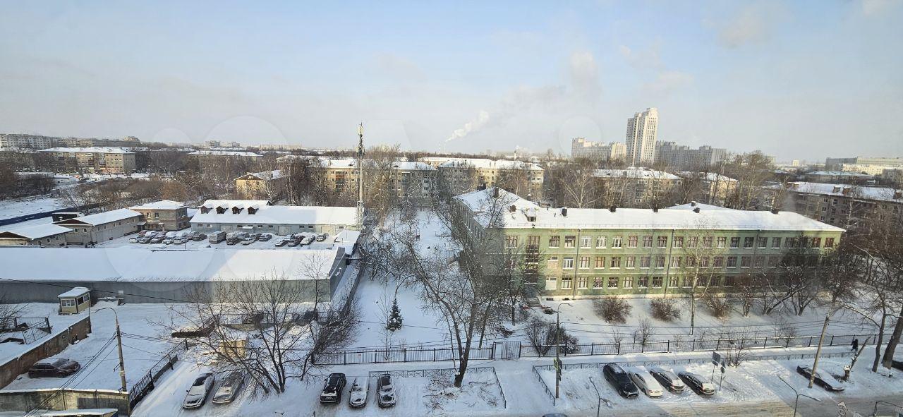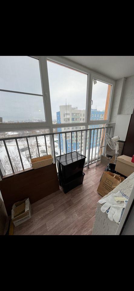 Просторная большая, тёплая лоджия (на полу ламинат) с панорамным видом на город. Подойдет для удалённой работы или в качестве летней комнаты.