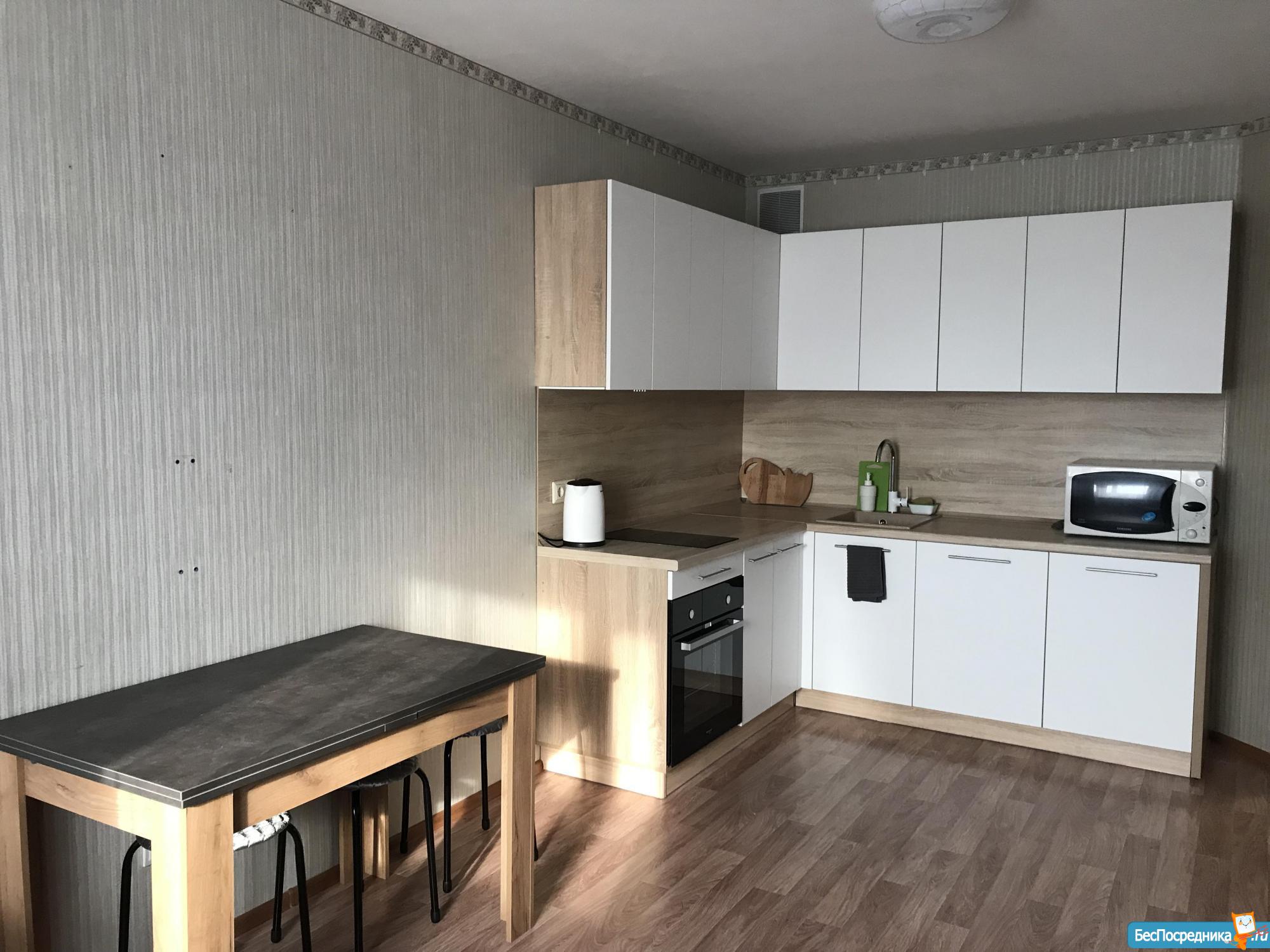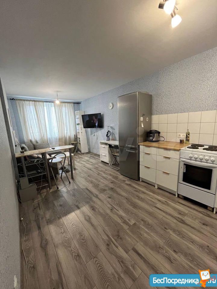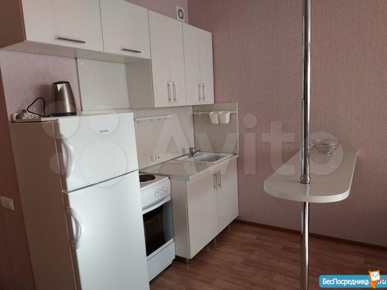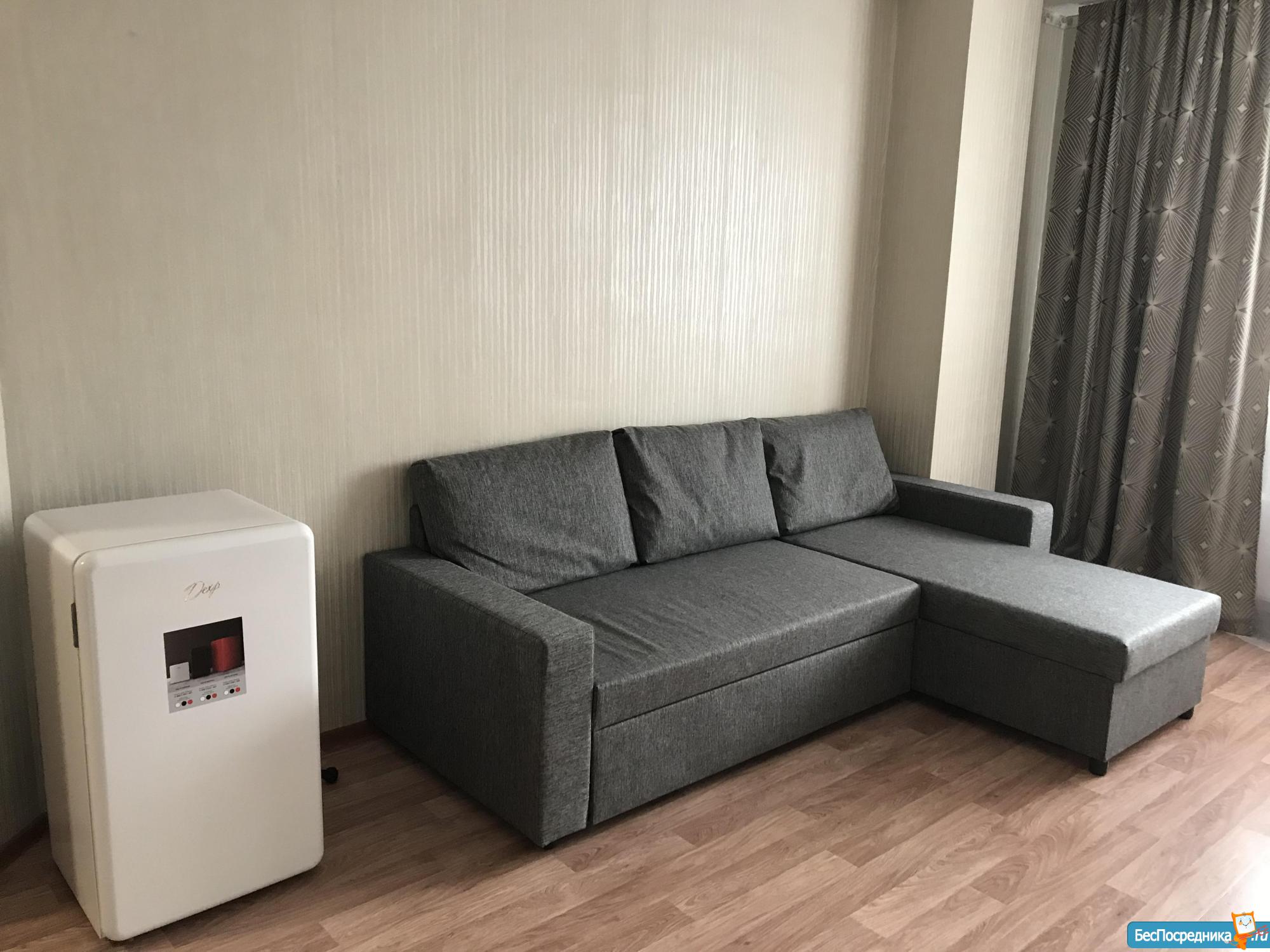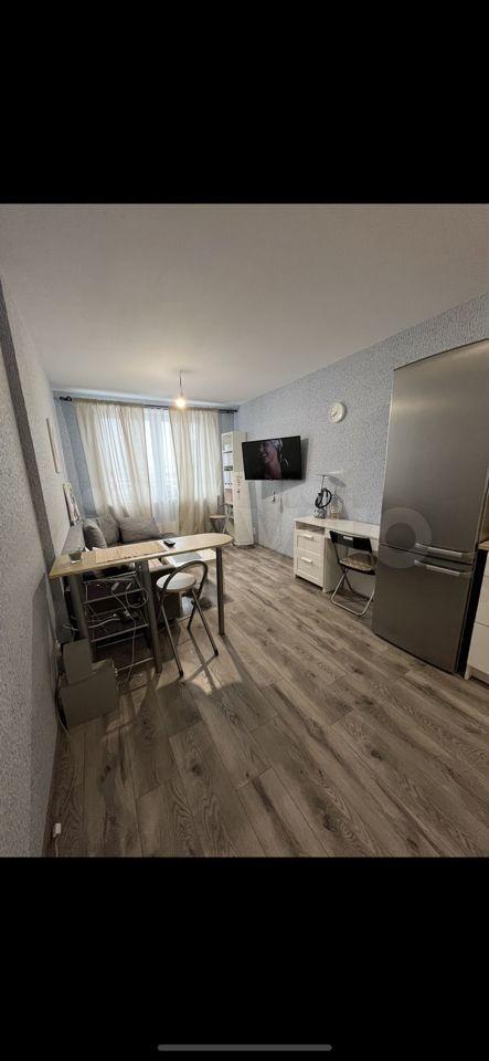 Студия с мебелью в новом 19-этажном доме. На этажах видеонаблюдение. Арендная плата плюс коммунальные расходы по счётчику (вода+электричество). Рядом находится супермаркет Карусель, Макдональдс. Удобная транспортная развязка (Московское шоссе).