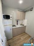 санузел - совмещённый, мебель - кухня, хранение одежды, спальные места, холодильник, плита, стиральная машина.