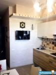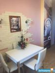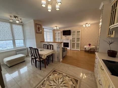 Для комфортного проживания квартира оборудована бытовой техникой: 2 настенных LCD-телевизора LG, холодильник и стиральная машина BOSCH, встроенная СВЧ печь и электрическая варочная поверхность Hotpoint Ariston, вытяжка Jetair, кондиционер BEKO, система очистки воды АКВАФОР. В комплекте - электрочайник Philips, пылесос Samsung, фен, утюг. Кухонный гарнитур Кухни Мария.