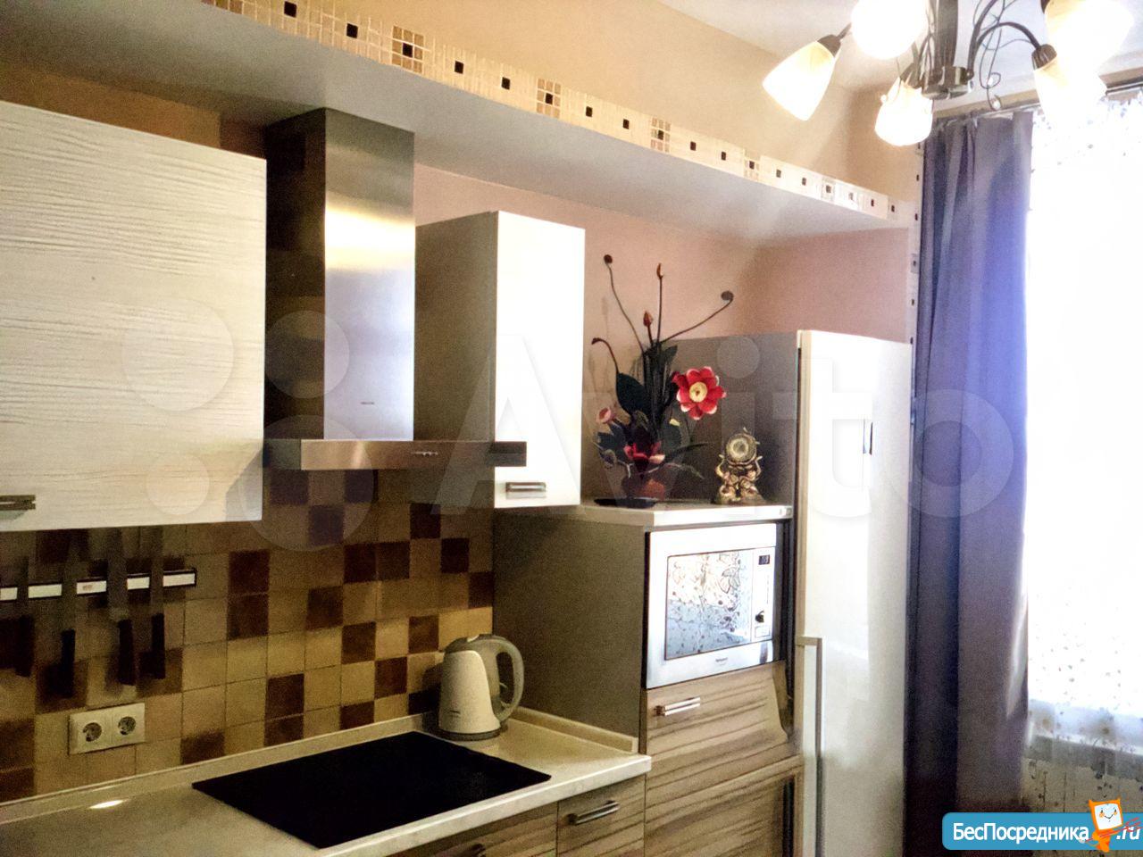 Квартира сдается с мебелью, техникой (варочная поверхность, духовой электрический шкаф, стиральная машина, микроволновая печь, электрочайник, холодильник, ЖК телевизор, кондиционер), есть отдельный гардероб.