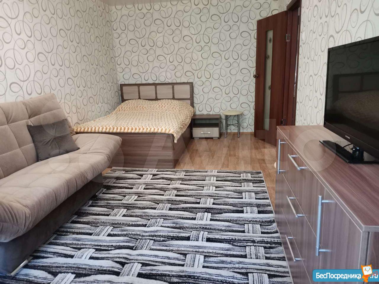 Кравтира с мебелью (диван, большой встроеный шкаф, кухонный гарнитур, холодильник, стол, стулья, посуда), все необходимое для проживания. При желание можете завозить свою мебель.