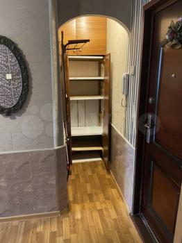 Окна пластиковые на кухне и в маленькой комнате,в большой комнате стоит диван и шкаф.Еще один шкаф есть в прихожей.
