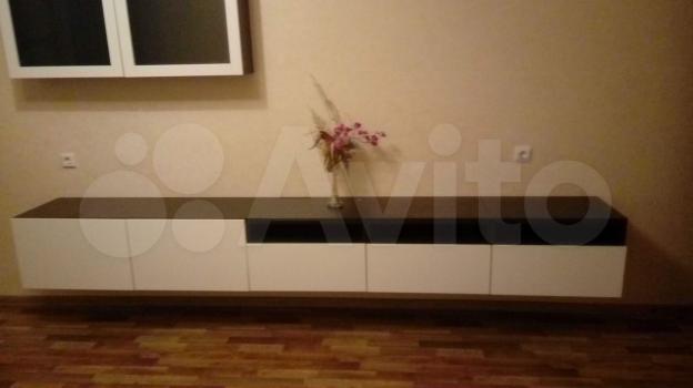 во 2 комнате - диван, стол и стенка с ящиками.