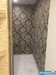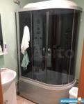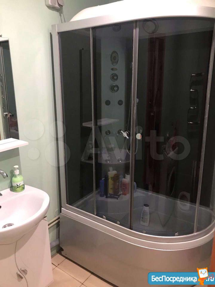 В ванной душевая кабина,натяжной потолок,стены покрашены профессиональной водоотталкивающей краской.