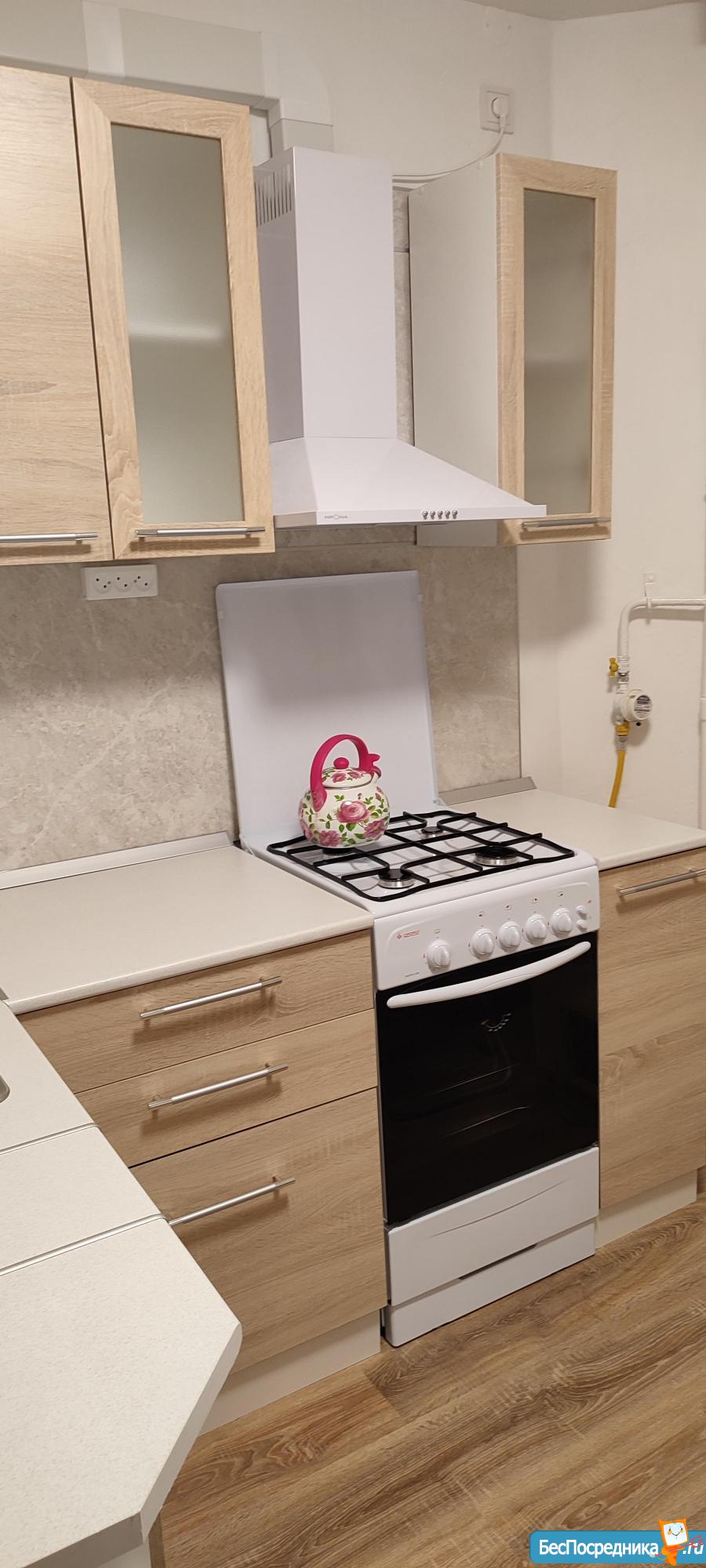 Есть все необходимое для комфортной жизни: газовая плита+духовой шкаф, вытяжка, стиральная машина, холодильник, телевизор, просторная лоджия и прихожая.