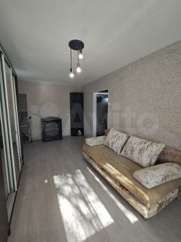 Выполнен ремонт, в наличии мебель, большой раскладываемый двухместный диван, есть холодильник, микроволновка, новая газовая колонка для горячей воды, окна - пластик, проведен интернет.