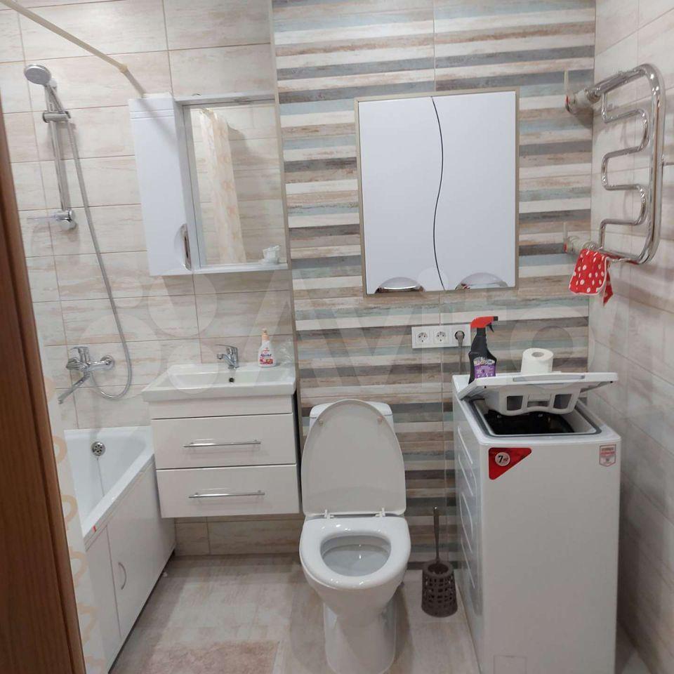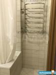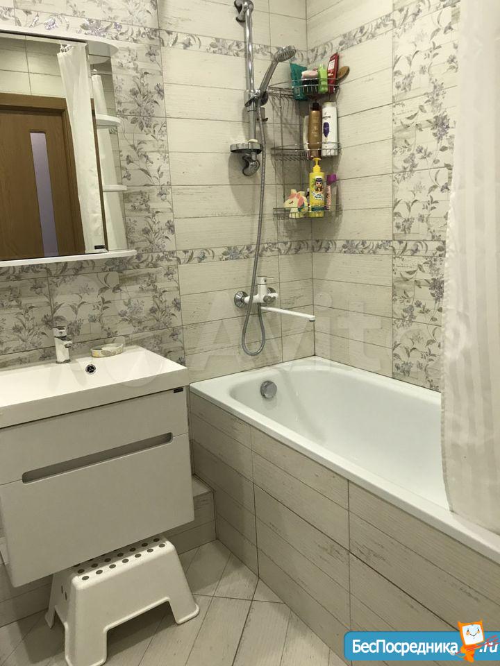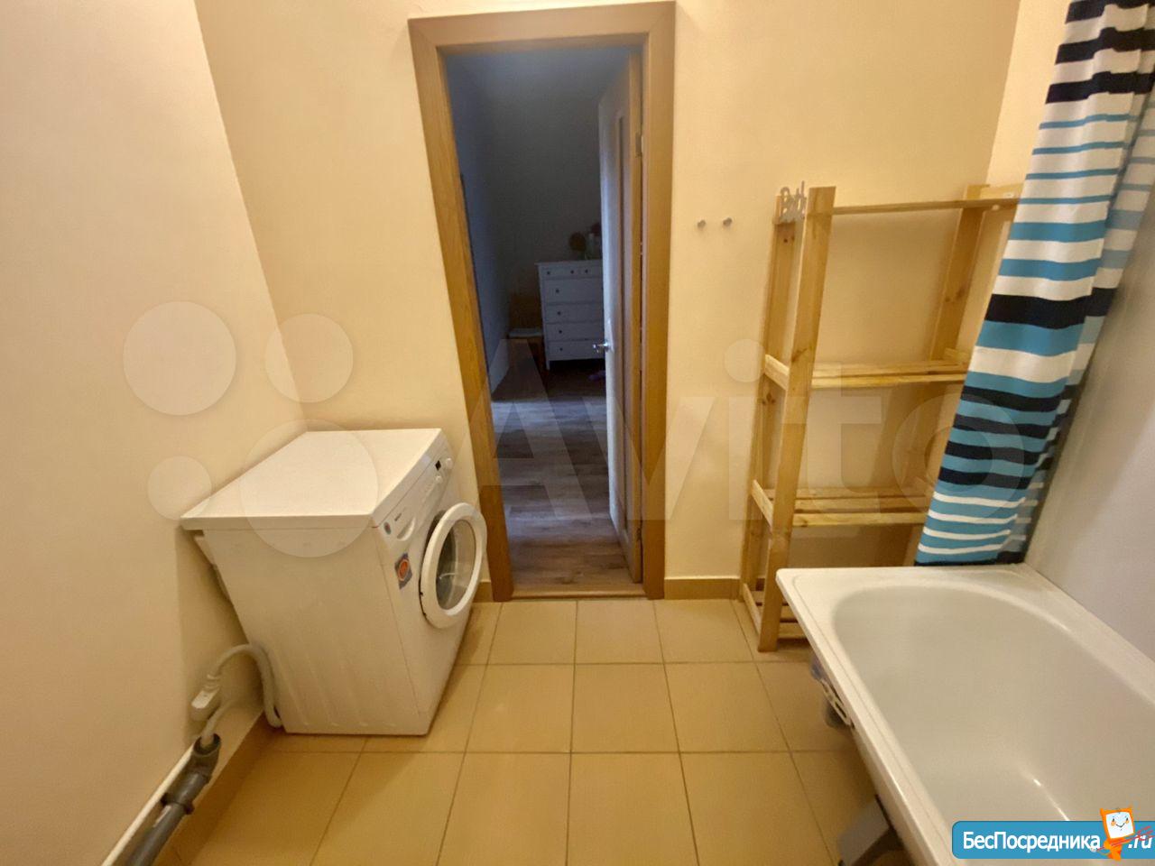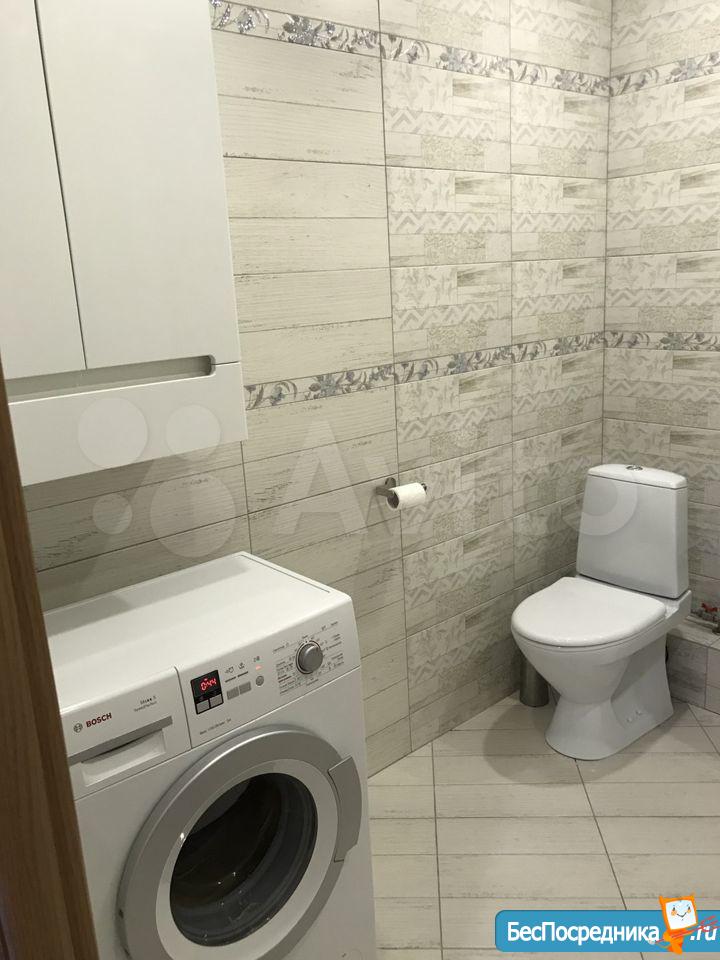 В ванной всё полностью выложено плиткой, ремонт новый, только что сделанный. Есть новая стиральная машина.