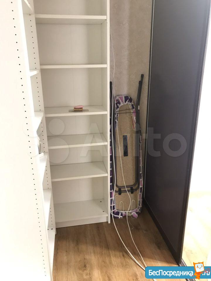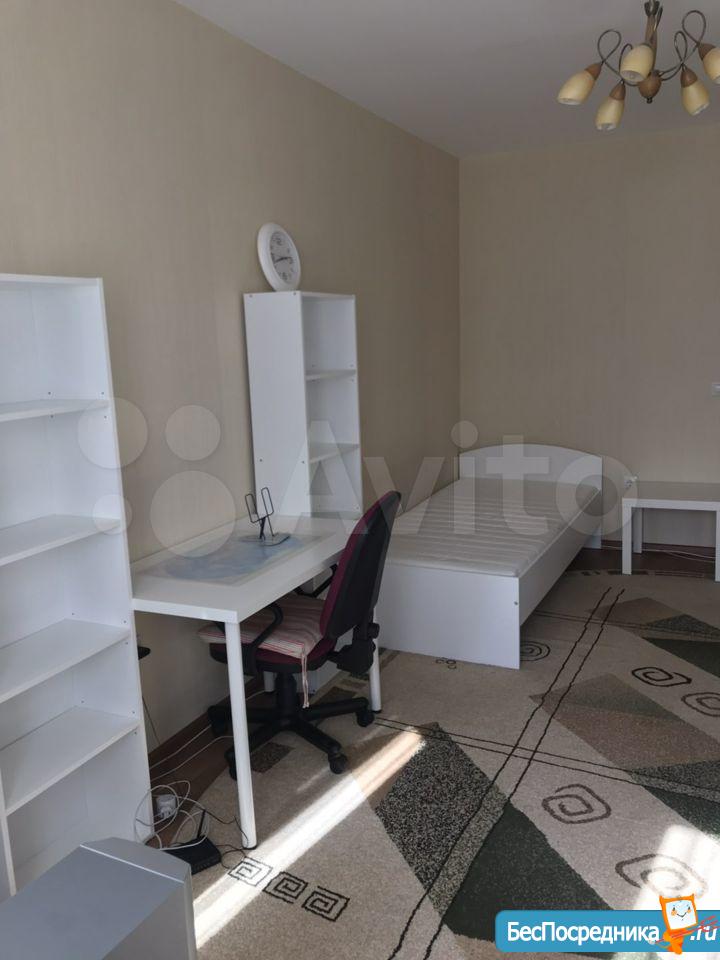 В комнате есть стеллаж с большим телевизором, гладильная доска, повешены занавески. Насчёт спального места оставляем на усмотрение жильцам - кровать или диван, что вам удобнее, можно купить в счёт оплаты за первый месяц и оставить впоследствии нам или привезти своё.