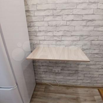 В течение месяца будет установлен стол, сделанный на заказ во всю стену с фасадами из МДФ-панелей, с доводчиками на ящиках и стеклянной панелью в шкафчике.