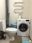 Есть все необходимое для комфортного проживания: стиральная машинка, холодильник, микроволновка, варочная панель и духовка, большой вместительный шкаф, диван.