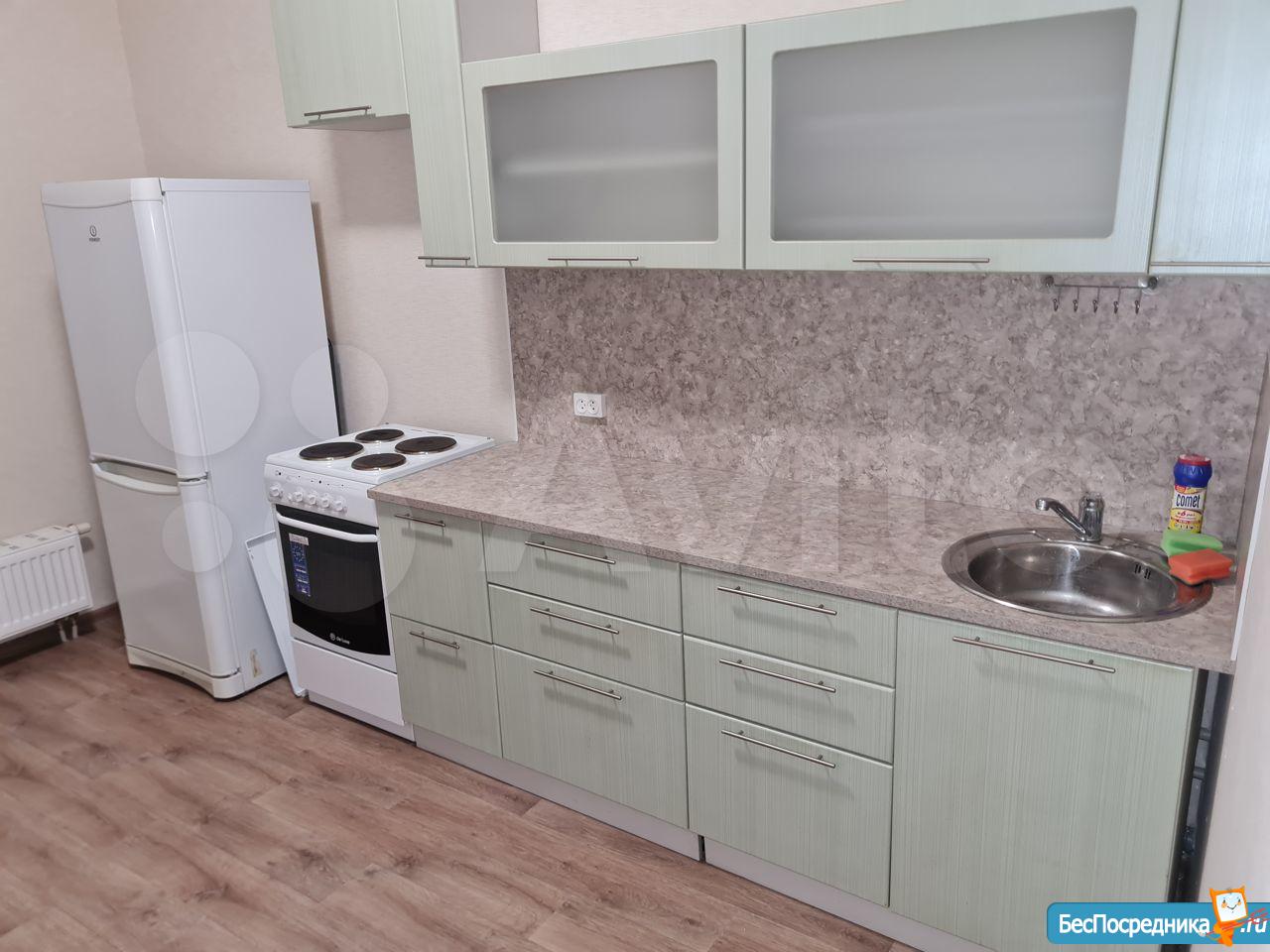 -кухонный гарнитур, плита, холодильник, стиральная машина. МЕБЕЛИ НЕТ ( в счет аренды не рассматривается)