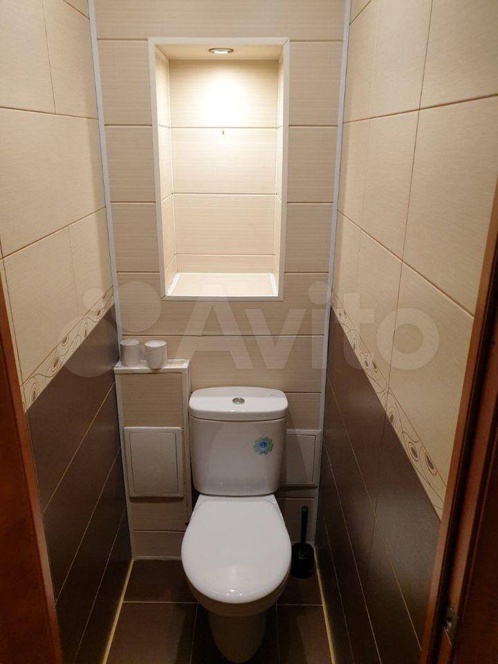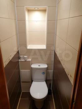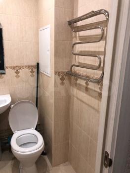 Санузел совмещённый, оформлен в современном стиле. Зеркало с подсветкой и обогревом.