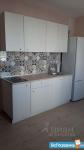 Кухня оборудована необходимой бытовой техникой, включая холодильник и плиту. Ванная комната совмещенная, оснащена ванной и стиральной машиной.