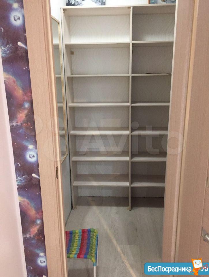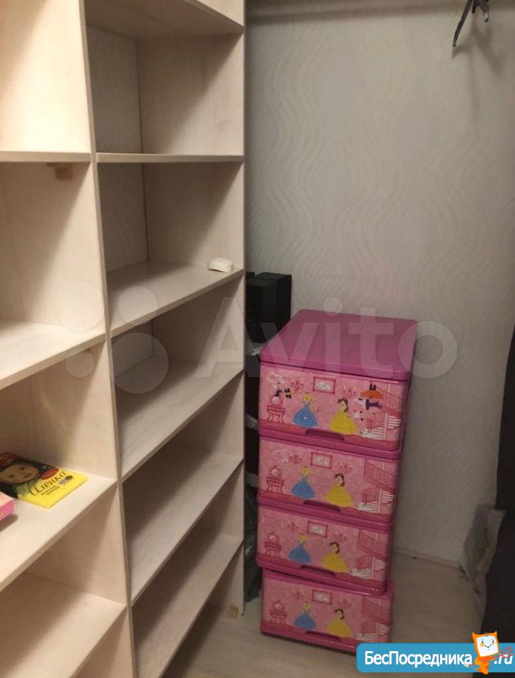 Детская: диван ИКЕА, рабочее место (можно использовать как для Home office или отличное место для школьника, по бокам вместительные шкафы, в детской комнате расположена просторная гардеробная комната с большим зеркалом и множеством полок и штанг для хранения вещей. С таким гардеробом в квартире абсолютно не нужны шкафы, все хранится там.