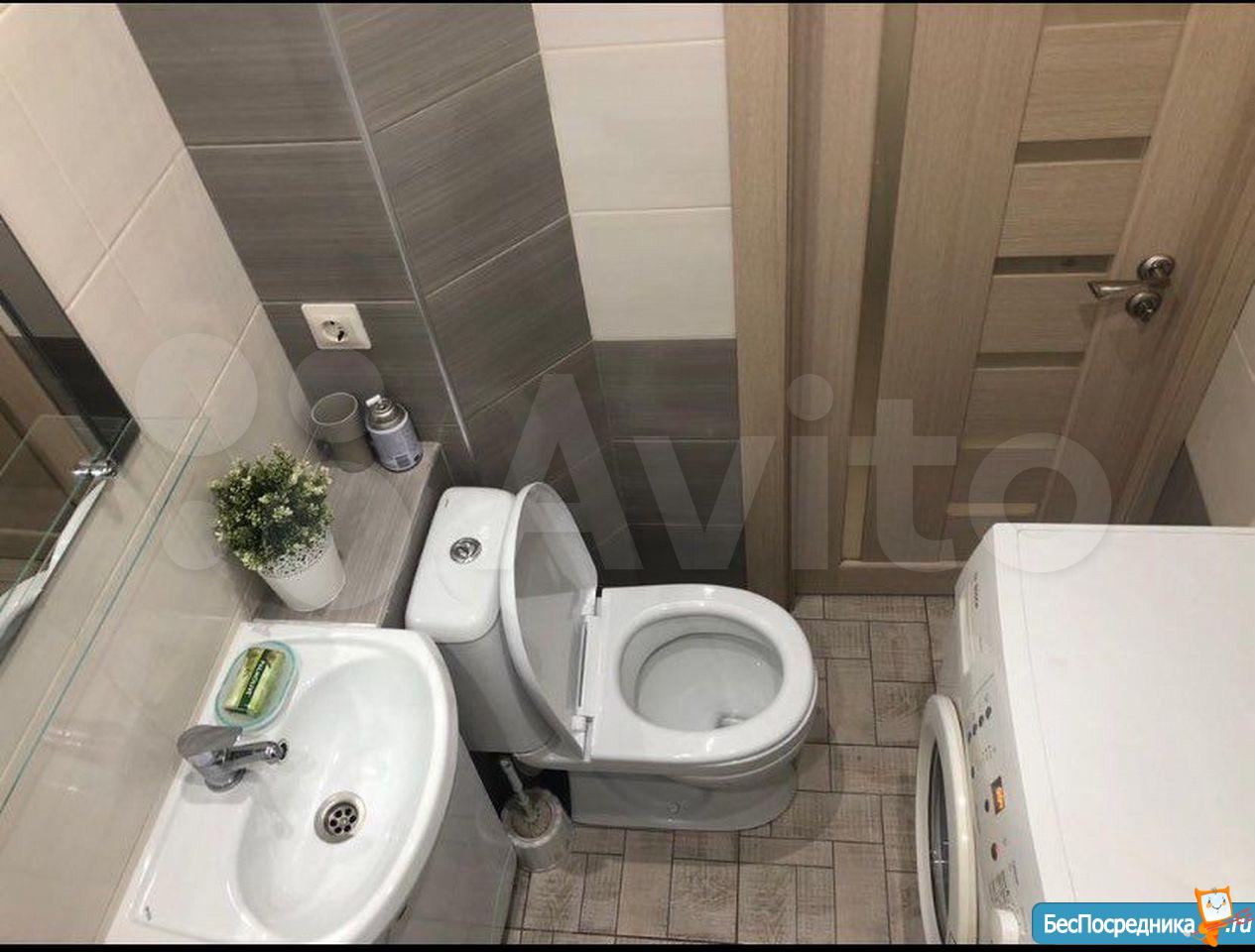Ванная комната и туалет совмещенные, имеется автоматическая стиральная машинка Bosch.
