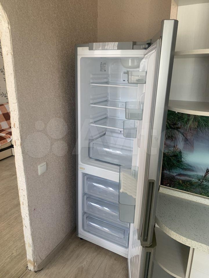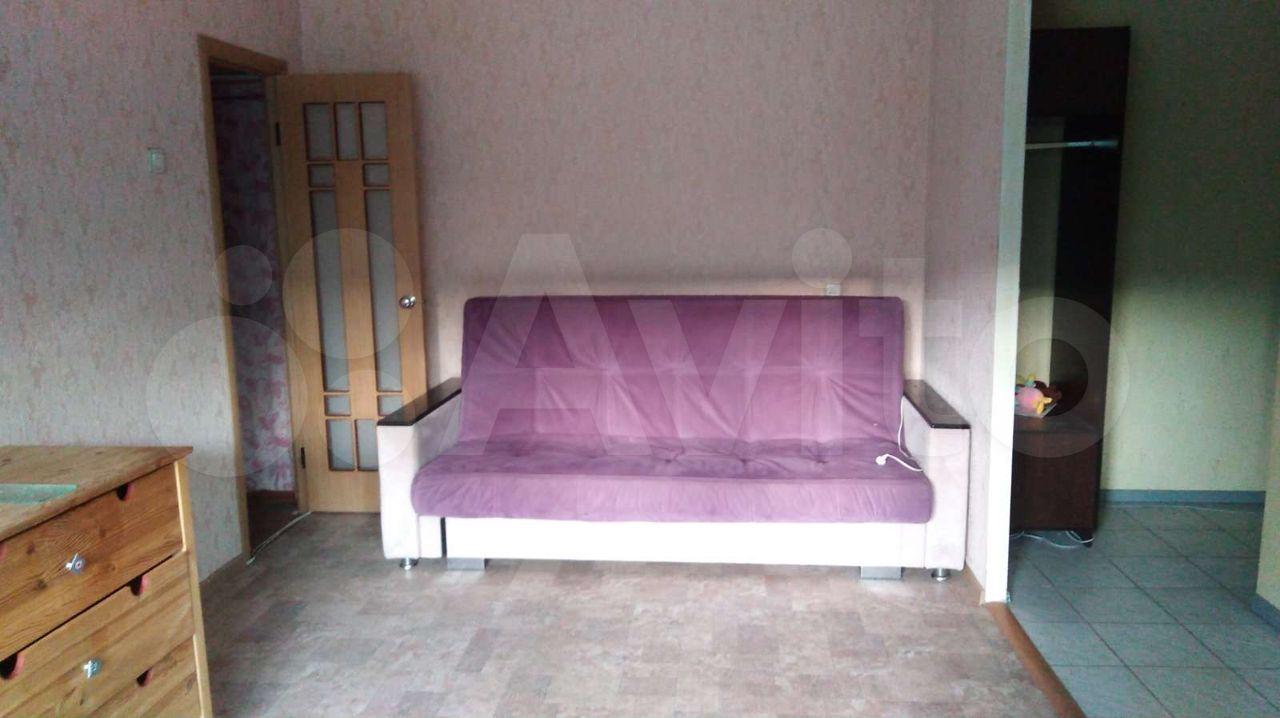 Квартира оборудованна необходимой техникой: холодильник, плита, стиральная машина. В комнате установлена удобный диван, есть шкаф для одежды.