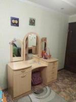 Светлая комнота с мебелью: диван, угловой шкаф, компьютерный стол, трюмо с зеркалом.