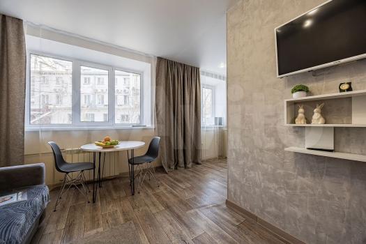 Квартира уютная. Техника вся в наличии: стиральная машинка, микроволновка, утюг, холодильник, чайник, плита, телевизор. Комната 17 метров, кухня 6 метров. Балкон или для сушки белья, или для курения. Текстиль в квартире есть. Санузел совместный. Фото прошлогодние, сделаны перед предыдущими гостями. Сейчас квартира более стильно выглядит. Квартира сдаётся после клининга и минимум на полгода. По счётчикам отдельно ( свет и газ). Вода горячая из центрального водоснабжения.
