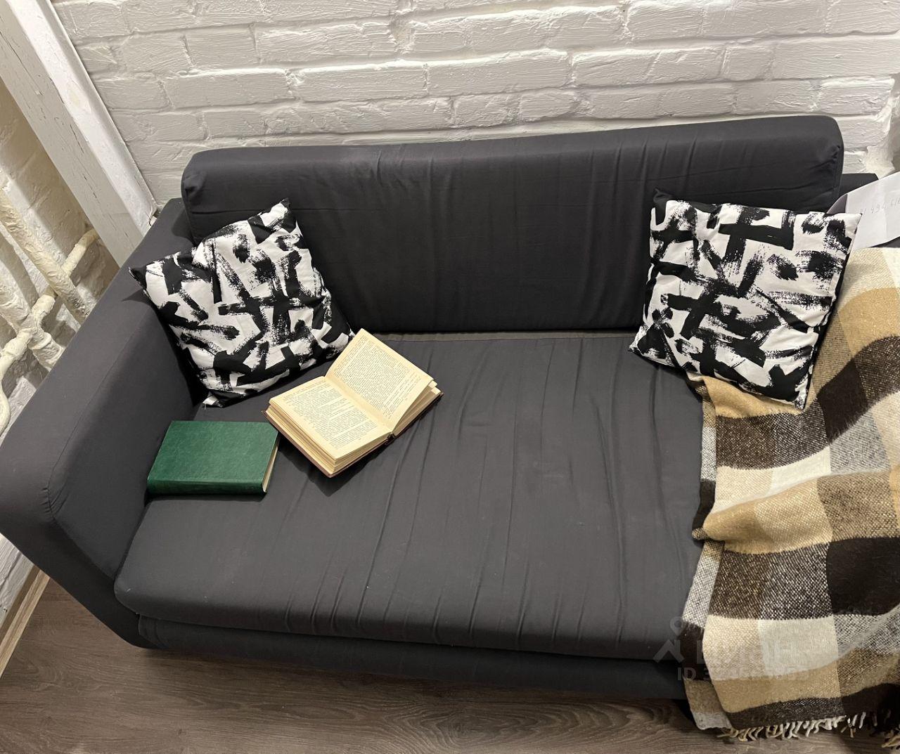 Есть все необходимое для проживания: двуспальная кровать, диван, шкаф.