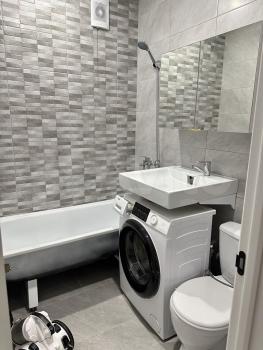 Кухня полностью укомплектована встроенной техникой: холодильником, духовкой, микроволновой печью, чайником и варочной панелью. Также установлена стиральная машина. Вся техника находится в рабочем состоянии. В квартире центральное отопление с радиаторами и современная система освещения со встроенными светильниками.